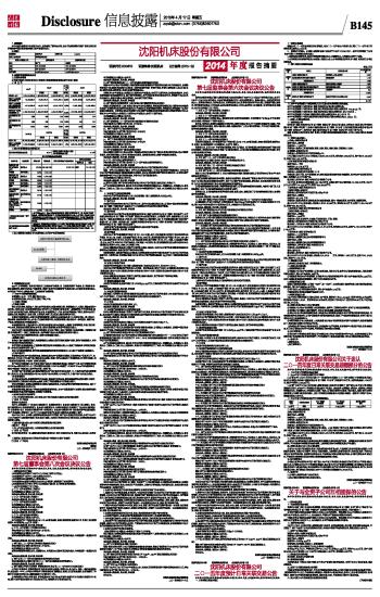 沈阳机床股份有限公司2014年度报告摘要 2015-04-17 来源:证券时报网 作者: