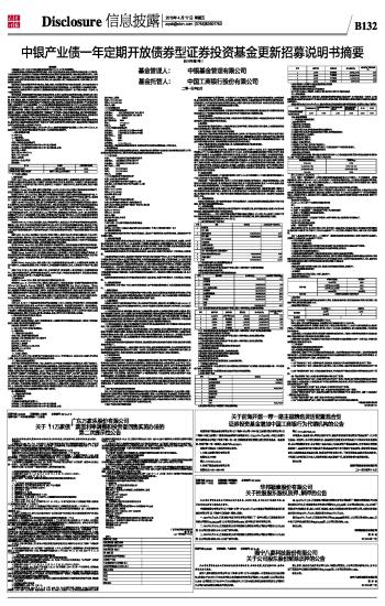 中银产业债一年定期开放债券型证券投资基金更新招募说明书摘要