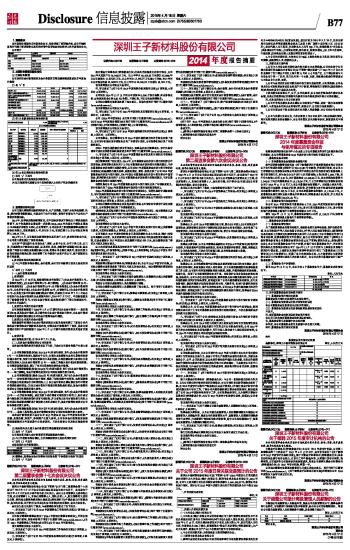 深圳王子新材料股份有限公司2014年度报告摘要 2015-04-18 来源:证券时报网 作者: