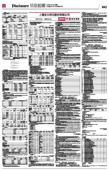 上海交大昂立股份有限公司2014年度报告摘要 2015-04-18 来源:证券时报网 作者: