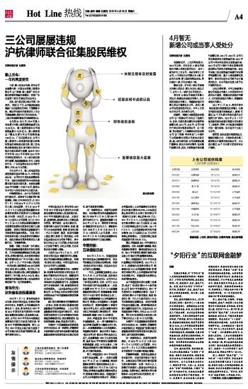 证券时报记者 刘雯亮 根据深交所、上交所网站显示,2015年以来,两市共有11家公司或相关当事人受到交易所处分,其中1家为沪市上市公司,其余为深市上市公司。3月受处分公司数目为3家,分别为大东南、零七股份和利达光电,同比减少1家,环比亦减少1家。 截至目前,沪市有1家公司或相关当事人受处分,即山水文化。相比之下,去年3月,1家沪市公司受处分。 深市有10家公司或相关当事人受处分。除康达尔或相关当事人、北大医药或相关当事人、禾盛新材相关当事人受公开谴责处分之外,其他7家公司均受通报批评处分。今年3月受处分的公司,均为深市公司。 经查明,福建三木集团股份有限公司(以下简称公司)存在以下违规行为:首先,关联交易未履行审议程序和披露义务。2012年、2013年,公司与福州开发区华永贸易有限公司(以下简称“华永贸易”),与福建华永科技有限公司(以下简称“华永科技”),与福州三木园林绿化有限公司发生关联交易。就上述关联交易,公司未按规定履行董事会、股东大会审议程序,也未履行披露义务。其次,关联资金往来未履行披露义务。2012年、2013年,公司与华永贸易发生关联资金往来,2012年公司与华永科技发生关联资金往来,2012年公司与福州开发区联得益贸易有限公司发生关联资金往来。但公司未就上述关联资金往来履行审议程序和披露义务。鉴于上述违规事实及情节,深交所决定对公司给予公开谴责的处分;对公司相关负责人给予公开谴责的处分。 从处分类型看,今年以来新增3家公司或相关当事人3次受到两大交易所公开谴责,即康达尔或相关当事人、北大医药或相关当事人、禾盛新材或相关当事人。 2011年11月28日,深交所发布《创业板退市制度意见征求稿》,在原有的创业板退市标准体系上,新增“在最近36个月内累计受到交易所公开谴责三次”条件。2012年5月1日开始实施的创业板退市制度中再次重申了上述条件。同样,中小板退市制度沿用这一退市标准,但不适用于主板上市公司。 很明显,创业板退市制度推出后,继振东制药之后,万福生科成为第二家受到公开谴责的创业板公司,而且是在最近36个月内累计受到两次公开谴责。 本版导读: