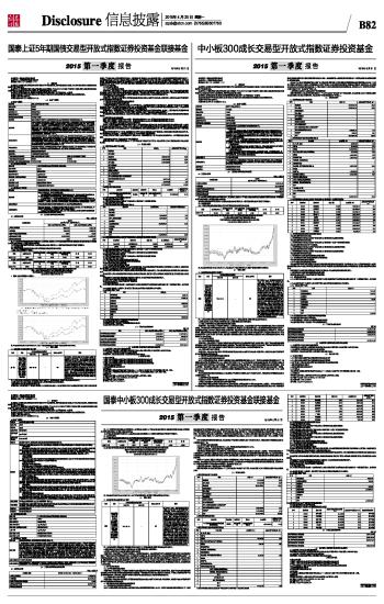 基金管理人:国泰基金管理有限公司 基金托管人:中国建设银行股份有限公司 报告送出日期:二〇一五年四月二十日 §1 重要提示 基金管理人的董事会及董事保证本报告所载资料不存在虚假记载、误导性陈述或重大遗漏,并对其内容的真实性、准确性和完整性承担个别及连带责任。 基金托管人中国建设银行股份有限公司根据本基金合同规定,于2015年4月15日复核了本报告中的财务指标、净值表现和投资组合报告等内容,保证复核内容不存在虚假记载、误导性陈述或者重大遗漏。 基金管理人承诺以诚实信用、勤勉尽责的原则管理和运用基金资产,但不保证基金一定盈利。 基金的过往业绩并不代表其未来表现。投资有风险,投资者在作出投资决策前应仔细阅读本基金的招募说明书。 本报告中财务资料未经审计。 本报告期自2015年1月1日起至3月31日止。 §2 基金产品概况 2.1基金产品概况 ■ 2.1.1目标基金基本情况 ■ 2.1.2目标基金产品说明 ■ §3 主要财务指标和基金净值表现 3.1 主要财务指标 单位:人民币元 ■ 注:(1)本期已实现收益指基金本期利息收入、投资收益、其他收入(不含公允价值变动收益)扣除相关费用后的余额,本期利润为本期已实现收益加上本期公允价值变动收益。 (2)所述基金业绩指标不包括持有人认购或交易基金的各项费用,计入费用后实际收益水平要低于所列数字。 3.2 基金净值表现 3.2.1本报告期基金份额净值增长率及其与同期业绩比较基准收益率的比较 1、国泰上证5年期国债ETF联接A: ■ 2、国泰上证5年期国债ETF联接C: ■ 3.2.2 自基金合同生效以来基金累计净值增长率变动及其与同期业绩比较基准收益率变动的比较 国泰上证5年期国债交易型开放式指数证券投资基金联接基金 累计净值增长率与业绩比较基准收益率的历史走势对比图 (2013年3月7日至2015年3月31日) 1.国泰上证5年期国债ETF联接A: ■ 注:本基金合同生效日为2013年3月7日,在6个月建仓期结束时,各项资产配置比例符合合同约定。 §4 管理人报告 4.1 基金经理(或基金经理小组)简介 ■ 注:1、此处的任职日期和离任日期均指公司决定生效之日,首任基金经理,任职日期为基金合同生效日。 2、证券从业的含义遵从行业协会《证券业从业人员资格管理办法》的相关规定。 4.2报告期内本基金运作遵规守信情况说明 本报告期内,本基金管理人严格遵守《证券法》、《证券投资基金法》、《基金管理公司公平交易制度指导意见》等有关法律法规的规定,严格遵守基金合同和招募说明书约定,本着诚实信用、勤勉尽责、最大限度保护投资人合法权益等原则管理和运用基金资产,在控制风险的基础上为持有人谋求最大利益。本报告期内,本基金运作合法合规,未发生损害基金份额持有人利益的行为,未发生内幕交易、操纵市场和不当关联交易及其他违规行为,信息披露及时、准确、完整,本基金与本基金管理人所管理的其他基金资产、投资组合与公司资产之间严格分开、公平对待,基金管理小组保持独立运作,并通过科学决策、规范运作、精心管理和健全内控体系,有效保障投资人的合法权益。 4.3 公平交易专项说明 4.3.1 公平交易制度的执行情况 本报告期内,本基金管理人严格遵守《证券投资基金管理公司公平交易制度指导意见》的相关规定,通过严格的内部风险控制制度和流程,对各环节的投资风险和管理风险进行有效控制,严格控制不同投资组合之间的同日反向交易,严格禁止可能导致不公平交易和利益输送的同日反向交易,确保公平对待所管理的所有基金和投资组合,切实防范利益输送行为。 4.3.2 异常交易行为的专项说明 本报告期内,本基金与本基金管理人所管理的其他投资组合未发生大额同日反向交易。本报告期内,未发现本基金有可能导致不公平交易和利益输送的异常交易。 4.4 报告期内基金的投资策略和业绩表现说明 4.4.1报告期内基金投资策略和运作分析 一季度经济增长数据上表现仍较为疲弱,2015年开局乏力。工业增加值增长再下台阶到7%以下,固定资产投资在房地产和制造业的带动下继续下滑,基建投资对冲能力有限,CPI、PPI均在低位徘徊。不过代表先行指标的新增贷款数据保持在高位,中央政府稳增长措施稳步推出,PMI指数在逐月微弱改善,经济增长有可能低位企稳。 市场流动性在一季度依然处于较为宽松的状态,尽管受到新股申购、春节因素等的影响,但总体上,银行间市场七天回购利率维持较低位置。央行在一季度降息降准,并持续下调公开市场利率,显示了其继续保持宽松的政策导向。 作为跟踪标的指数的被动型基金,本基金所投资的国泰上证5年期国债ETF采用优化抽样复制法,选取市场流动性较好的国债构建组合。 4.4.2报告期内基金的业绩表现 国泰上证5年期国债ETF联接A在2015年第一季度的净值增长率为1.07%,同期业绩比较基准收益率为0.27%。 国泰上证5年期国债ETF联接C在2015年第一季度的净值增长率为0.98%,同期业绩比较基准收益率为0.27%。 4.5管理人对宏观经济、证券市场及行业走势的简要展望 2015年,中国经济依然将在稳增长与促改革中前行。内需疲弱恐难在很快内逆转,政府投资的提振只能在短期内起到一定的作用,好在海外经济的复苏可以在一定程度上弥补内需的乏力。货币政策有望继续降准以补充基础货币的投放,降息以降低社会融资成本。尽管随着政府