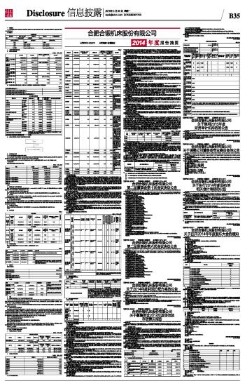 合肥合锻机床股份有限公司2014年度报告摘要 2015-04-20 来源:证券时报网 作者: