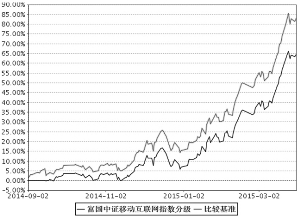 ■ §1 重要提示 ■ §2 基金产品概况 ■ 注:根据《富国基金管理有限公司关于旗下部分指数证券投资基金变更场内简称的公告》,富国中证移动互联网指数分级证券投资基金自2015年4月13日起变更基础份额的场内简称(交易代码不变),场内简称由“富国互联”变更为“移动互联”。 §3 主要财务指标和基金净值表现 3.1主要财务指标 单位: 人民币元 ■ 注:上述基金业绩指标不包括持有人认购或交易基金的各项费用(例如,开放式基金的申购赎回费、基金转换费等),计入费用后实际收益水平要低于所列数字。本期已实现收益指基金本期利息收入、投资收益、其他收入(不含公允价值变动收益)扣除相关费用后的余额,本期利润为本期已实现收益加上本期公允价值变动收益。 3.2基金净值表现 3.2.1本报告期基金份额净值增长率及其与同期业绩比较基准收益率的比较 ■ 注:过去三个月指2015年1月1日-2015年3月31日 3.2.2自基金合同生效以来基金累计份额净值增长率变动及其与同期业绩比较基准收益率变动的比较 ■ 注:1、截止日期为2015年3月31日。 2、本基金于2014年9月2日成立,建仓期6个月,即从2014年9月2日起至2015年3月1日,建仓期结束时各项资产配置比例均符合基金合同约定。 3.3其他指标 ■ §4 管理人报告 4.1基金经理(或基金经理小组)简介 ■ 4.2报告期内本基金运作遵规守信情况说明 本报告期,富国基金管理有限公司作为富国中证移动互联网指数分级证券投资基金的管理人严格按照《中华人民共和国证券投资基金法》、《中华人民共和国证券法》、《富国中证移动互联网指数分级证券投资基金基金合同》以及其它有关法律法规的规定,本着诚实信用、勤勉尽责的原则管理和运用基金资产,以尽可能减少和分散投资风险、确保基金资产的安全并谋求基金资产长期稳定的增长为目标,基金投资组合符合有关法规及基金合同的规定。 4.3公平交易专项说明 4.3.1公平交易制度的执行情况 本基金管理人根据相关法规要求,结合实际情况,制定了内部的《公平交易管理办法》,对证券的一级市场申购、二级市场交易相关的研究分析、投资决策、授权、交易执行、业绩评估等投资管理环节,实行事前控制、事中监控、事后评估及反馈的流程化管理。在制度、操作层面确保各组合享有同等信息知情权、均等交易机会,并保持各组合的独立投资决策权。 事前控制主要包括:1、一级市场,通过标准化的办公流程,对关联方审核、价格公允性判断及证券公平分配等相关环节进行控制;2、二级市场,通过交易系统的投资备选库、交易对手库及授权管理,对投资标的、交易对手和操作权限进行自动化控制。 事中监控主要包括组合间相同投资标的的交易方向、市场冲击的控制,银行间市场交易价格的公允性评估等。1、将主动投资组合的同日反向交易列为限制行为,非经特别控制流程审核同意,不得进行;对于同日同向交易,通过交易系统对组合间的交易公平性进行自动化处理。2、同一基金经理管理的不同组合,对同一投资标的采用相同投资策略的,必须通过交易系统采取同时、同价下达投资指令,确保公平对待其所管理的组合。 事后评估及反馈主要包括组合间同一投资标的的临近交易日的同向交易和反向交易的合理性分析评估,以及不同时间窗口下(1日、3日、5日)的季度公平性交易分析评估等。1、通过公平性交易的事后分析评估系统,对涉及公平性交易的投资行为进行分析评估,分析对象涵盖公募、年金、社保及专户产品,并重点分析同类组合(股票型、混合型、债券型)间、不同产品间以及同一基金经理管理不同组合间的交易行为,若发现异常交易行为,监察稽核部视情况要求相关当事人做出合理性解释,并按法规要求上报辖区监管机构。2、季度公平性交易分析报告按规定经基金经理或投资经理签字,并经督察长、总经理审阅签字后,归档保存,以备后查。 本报告期内公司旗下基金严格遵守公司的相关公平交易制度,未出现违反公平交易制度的情况。 4.3.2异常交易行为的专项说明 本报告期内未发现异常交易行为。 公司旗下管理的各投资组合在交易所公开竞价同日反向交易的控制方面,报告期内本组合与其他投资组合之间,因组合流动性管理或投资策略调整需要,出现3次同日反向交易成交较少的单边交易量超过该证券当日成交量5%的情况。 4.4报告期内基金的投资策略和运作分析 回顾2015年一季度,居民大类资产配置继续向股市迁移,A股再度领跑全球主要股市,和2014年四季度相比,市场风格有所切换,小盘股表现更佳,其中上证综指单季上涨15.87%,而创业板指数更是迎来最大单季涨幅,上涨58.66%。自2014年四季度以来,央行连续降息带来的流动性宽松,叠加金融改革、经济转型推进降低风险溢价,促使居民的大量资产配置行为发生改变,股市替代房地产,成为居民资产配置的首选。而监管层对于金融创新的鼓励,特别是对加杠杆投资行为的宽容,带动场外资金跑步进场。截止3月末,股市新增开户数再次新高,已超过07年周度新增开户数,增量资金推动市场快速上涨。2015年两会期间,李克强总理在政府工作报告中提出将“互联网+”作为国家战略进行推进,“互联网+”成为一季度A股市场关注度最高的主题,中证移动互联网指数一季度整体上涨62.57%。 在投资管理上,本基金采取完全复制的被动式指数基金