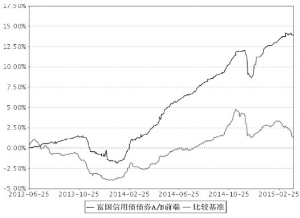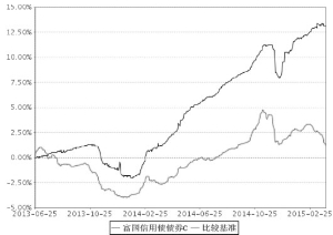 基金管理人:富国基金管理有限公司 基金托管人:中国建设银行股份有限公司 报告送出日期: 2015年04月20日 §1 重要提示 ■ §2 基金产品概况 ■ §3 主要财务指标和基金净值表现 3.1主要财务指标 单位: 人民币元 ■ 注:上述基金业绩指标不包括持有人认购或交易基金的各项费用(例如,开放式基金的申购赎回费、基金转换费等),计入费用后实际收益水平要低于所列数字。本期已实现收益指基金本期利息收入、投资收益、其他收入(不含公允价值变动收益)扣除相关费用后的余额,本期利润为本期已实现收益加上本期公允价值变动收益。 3.2基金净值表现 3.2.1本报告期基金份额净值增长率及其与同期业绩比较基准收益率的比较 (1)A/B级 ■ (2)C级 ■ 注:过去三个月指2015年1月1日-2015年3月31日 3.2.2自基金合同生效以来基金累计份额净值增长率变动及其与同期业绩比较基准收益率变动的比较 (1)自基金合同生效以来富国信用债债券A/B基金累计净值增长率变动及其与同期业绩比较基准收益率变动的比较 ■ 注:1.截止日期为2015年3月31日。 2.本基金于2013年6月25日成立,建仓期6个月,从2013年6月25日至2013年12月24日,建仓期结束时各项资产配置比例均符合基金合同约定。 (2)自基金合同生效以来富国信用债债券A/B基金累计净值增长率变动及其与同期业绩比较基准收益率变动的比较 ■ 注:1.截止日期为2015年3月31日。 2.本基金于2013年6月25日成立,建仓期6个月,从2013年6月25日至2013年12月24日,建仓期结束时各项资产配置比例均符合基金合同约定。 §4 管理人报告 4.1基金经理(或基金经理小组)简介 ■ 4.2报告期内本基金运作遵规守信情况说明 本报告期,富国基金管理有限公司作为富国信用债债券型证券投资基金的管理人严格按照《中华人民共和国证券投资基金法》、《中华人民共和国证券法》、《富国信用债债券型证券投资基金基金合同》以及其它有关法律法规的规定,本着诚实信用、勤勉尽责的原则管理和运用基金资产,以尽可能减少和分散投资风险、确保基金资产的安全并谋求基金资产长期稳定的增长为目标,基金投资组合符合有关法规及基金合同的规定。 4.3公平交易专项说明 4.3.1公平交易制度的执行情况 本基金管理人根据相关法规要求,结合实际情况,制定了内部的《公平交易管理办法》,对证券的一级市场申购、二级市场交易相关的研究分析、投资决策、授权、交易执行、业绩评估等投资管理环节,实行事前控制、事中监控、事后评估及反馈的流程化管理。在制度、操作层面确保各组合享有同等信息知情权、均等交易机会,并保持各组合的独立投资决策权。 事前控制主要包括:1、一级市场,通过标准化的办公流程,对关联方审核、价格公允性判断及证券公平分配等相关环节进行控制;2、二级市场,通过交易系统的投资备选库、交易对手库及授权管理,对投资标的、交易对手和操作权限进行自动化控制。 事中监控主要包括组合间相同投资标的的交易方向、市场冲击的控制,银行间市场交易价格的公允性评估等。1、将主动投资组合的同日反向交易列为限制行为,非经特别控制流程审核同意,不得进行;对于同日同向交易,通过交易系统对组合间的交易公平性进行自动化处理。2、同一基金经理管理的不同组合,对同一投资标的采用相同投资策略的,必须通过交易系统采取同时、同价下达投资指令,确保公平对待其所管理的组合。 事后评估及反馈主要包括组合间同一投资标的的临近交易日的同向交易和反向交易的合理性分析评估,以及不同时间窗口下(1日、3日、5日)的季度公平性交易分析评估等。1、通过公平性交易的事后分析评估系统,对涉及公平性交易的投资行为进行分析评估,分析对象涵盖公募、年金、社保及专户产品,并重点分析同类组合(股票型、混合型、债券型)间、不同产品间以及同一基金经理管理不同组合间的交易行为,若发现异常交易行为,监察稽核部视情况要求相关当事人做出合理性解释,并按法规要求上报辖区监管机构。2、季度公平性交易分析报告按规定经基金经理或投资经理签字,并经督察长、总经理审阅签字后,归档保存,以备后查。 本报告期内公司旗下基金严格遵守公司的相关公平交易制度,未出现违反公平交易制度的情况。 4.3.2异常交易行为的专项说明 本报告期内未发现异常交易行为。 公司旗下管理的各投资组合在交易所公开竞价同日反向交易的控制方面,报告期内本组合与其他投资组合之间未出现成交较少的单边交易量超过该证券当日成交量5%的情况。 4.4报告期内基金的投资策略和运作分析 2015年1季度,经济疲软政策宽松,债市收益率走低。同时股市走强,打新股收益率明显高于债券收益率,对资金形成分流。展望2015年2季度,债市不确定性加大,本基金将维持较低仓位,强调风险控制至上,稳固产业债占比,适当参与利率债的交易性机会,持续调整持仓结构,争取为基金持有人带来可持续的稳定投资回报。 4.5报告期内基金的业绩表现 本报告期,本基金A/B级净值增长率为2.35%,C级净值增长率为2.26%;A/B级同期业绩比较基准收益率为-0.71%,C级同期业绩比较基准收益率为-0.71%。 4.6报告期内管理人对本基金持有人数或基金资产净值预警情形的说明 本报告期无需要说明的相关情形。 §5 投资组合报告 5.1报告期末基金资产组合情况 ■ 注:本基金本报