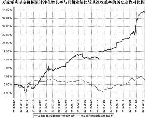 基金管理人:万家基金管理有限公司 基金托管人:中国邮政储蓄银行股份有限公司 报告送出日期:2015年4月22日 §1 重要提示 基金管理人的董事会及董事保证本报告所载资料不存在虚假记载、误导性陈述或重大遗漏,并对其内容的真实性、准确性和完整性承担个别及连带责任。 基金托管人中国邮政储蓄银行股份有限公司根据本基金合同规定,于2015年4月20日复核了本报告中的财务指标、净值表现和投资组合报告等内容,保证复核内容不存在虚假记载、误导性陈述或者重大遗漏。 基金管理人承诺以诚实信用、勤勉尽责的原则管理和运用基金资产,但不保证基金一定盈利。 基金的过往业绩并不代表其未来表现。投资有风险,投资者在作出投资决策前应仔细阅读本基金的招募说明书。 本报告中财务资料未经审计。 本报告期自2015年1月1日起至3月31日止。 §2 基金产品概况 ■ §3 主要财务指标和基金净值表现 3.1 主要财务指标 单位:人民币元 ■ 注:1、本期已实现收益指基金本期利息收入、投资收益、其他收入(不含公允价值变动收益)扣除相关费用后的余额,本期利润为本期已实现收益加上本期公允价值变动收益。 2、上述基金业绩指标不包括持有人交易基金的各项费用,计入费用后实际收益水平要低于所列数字。 3.2 基金净值表现 3.2.1 本报告期基金份额净值增长率及其与同期业绩比较基准收益率的比较 ■ 3.2.2 自基金合同生效以来基金累计净值增长率变动及其与同期业绩比较基准收益率变动的比较 ■ 注:本基金于2011年6月2日成立,根据基金合同规定,基金合同生效后六个月内为建仓期。建仓期结束时各项资产配置比例符合基金合同要求,报告期末各项资产配置比例符合基金合同要求。 §4 管理人报告 4.1 基金经理(或基金经理小组)简介 ■ 4.2 管理人对报告期内本基金运作遵规守信情况的说明 本报告期内,本基金管理人严格遵守基金合同、《证券投资基金法》、《公开募集证券投资基金投资运作管理办法》等法律、法规和监管部门的相关规定,依照诚实信用、勤勉尽责、安全高效的原则管理和运用基金资产,在认真控制投资风险的基础上,为基金持有人谋取最大利益,没有损害基金持有人利益的行为。 4.3 公平交易专项说明 4.3.1 公平交易制度的执行情况 根据中国证监会颁布的《证券投资基金管理公司公平交易制度指导意见》,公司制定了《公平交易管理办法》和《异常交易监控及报告管理办法》等规章制度,涵盖了研究、授权、投资决策和交易执行等投资管理活动的各个环节,确保公平对待不同投资组合,防范导致不公平交易以及利益输送的异常交易发生。 公司制订了明确的投资授权制度,并建立了统一的投资管理平台,确保不同投资组合获得公平的投资决策机会。实行集中交易制度,对于交易所公开竞价交易,执行交易系统中的公平交易程序;对于债券一级市场申购、非公开发行股票申购等非集中竞价交易,按照价格优先、比例分配的原则对交易结果进行分配;对于银行间交易,按照时间优先、价格优先的原则公平公正的进行询价并完成交易。为保证公平交易原则的实现,通过制度规范、流程审批、系统风控参数设置等进行事前控制,通过对投资交易系统的实时监控进行事中控制,通过对异常交易的监控和分析实现事后控制。 4.3.2 异常交易行为的专项说明 本报告期内未发现本基金有可能导致不公平交易和利益输送的异常交易。 本报告期内无下列情况:所有投资组合参与的交易所公开竞价同日反向交易成交较少的单边交易量超过该证券当日成交量的5%。 4.4 报告期内基金的投资策略和业绩表现说明 4.4.1 报告期内基金投资策略和运作分析 1.宏观经济分析 从一二月份宏观经济数据看,一季度宏观经济仍然处于下滑趋势中,且下滑速度有超预期的可能,工业品价格长期以来的下滑挫伤制造业企业的生产积极性,导致制造业投资的意愿逐步萎缩。而地产行业仍处于消化库存和观望政策力度的阶段,要想看到地产投资改善仍需时日。我们预计国内一季度GDP同比增长数据低于预期的概率较大。与传统行业疲弱相比,新兴产业却体现了蓬勃的生机,“互联网+”正在改变中国的经济结构。 2、市场回顾 一季度债券收益率处于低位震荡阶段。春节前,受地产销售弱于预期,以及偏弱的1-2月份宏观经济数据影响,债券收益率整体下行,利率债和信用债均获得较好的净价收益。但是春节过后,随着政策层面确认托底政策加码增效,以及地产政策再度松绑,市场对经济的悲观预期逐步修正,由此前的较为悲观转为企稳向好。另外,股市一路走强,也使得债券资产的吸引力大减。多重因素使得春节后债券市场收益率一路反弹,10年国开最大反弹约50BP,10年国债也上行约40BP,信用债方面,中长期限中票和企业债也上行超50BP。与中长期限债券收益率纷纷反弹相比的是,春节后资金价格在央行的引导下逐步走低,目前7天回购利率已经低至3%左右,接近去年9月份最低时候水平。资金价格的走低是的收益率曲线的短端较为稳定,期限利差相较于去年明显拉大。一季度权益市场表现极佳,但是转债的变现却稍显逊色,主要是存量转债品种稀缺以及高估值的制约。 3.运行分析 基于短期内一季度经济仍然面临较大下行压力、货币政策将继续宽松,和中长期宏观经济找不到强有力的增长点、经济增速