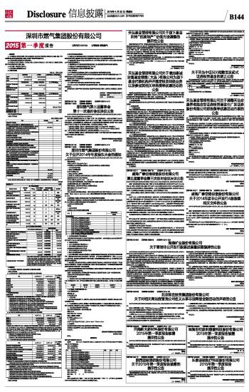 深圳市燃气集团股份有限公司2015年第一季度报告