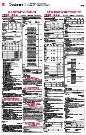 苏州新海宜通信科技股份有限公司2015第一季度报告
