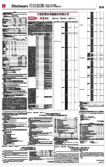 宁波圣莱达电器股份有限公司2015第一季度报告