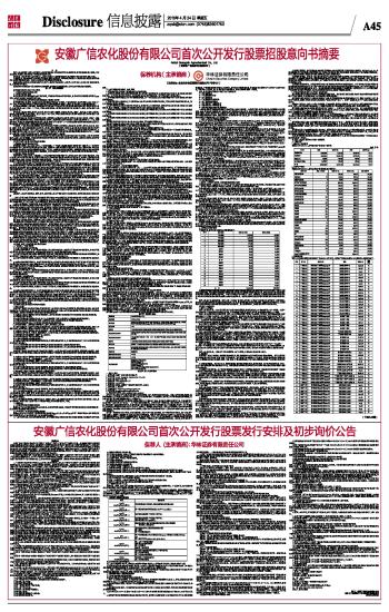 安徽广信农化股份有限公司首次公开发行股票招股意向书摘要 2015-04-24 来源:证券时报网 作者: