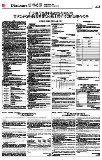 发行人:广东惠伦晶体科技股份有限公司 主承销商:招商证券股份有限公司 2015年4月24日 本版导读: