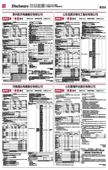 山东登海种业股份有限公司2015第一季度报告 2015-04-24 来源:证券时报网 作者: