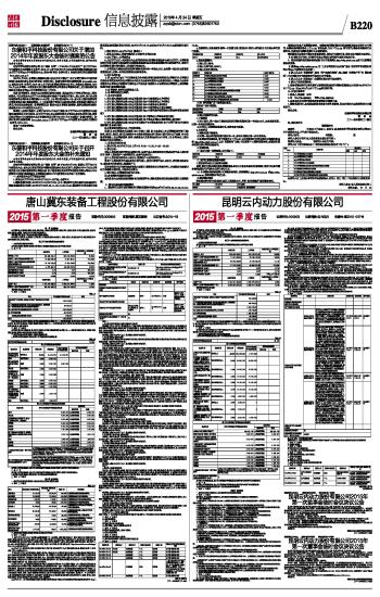 唐山冀东装备工程股份有限公司2015第一季度报告 2015-04-24 来源:证券时报网 作者: