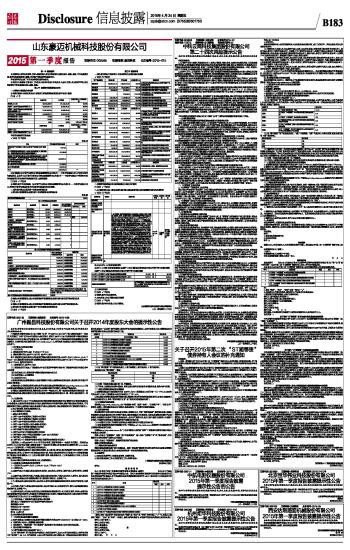 山东豪迈机械科技股份有限公司2015第一季度报告 2015-04-24 来源:证券时报网 作者: