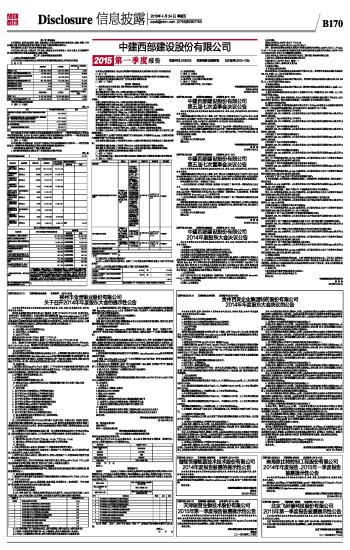 中建西部建设股份有限公司2015第一季度报告 2015-04-24 来源:证券时报网 作者: