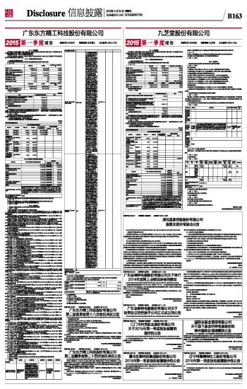 | 广东东方精工科技股份有限公司2015第一季度报告 | 2015-04-24 | |