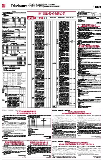| 浙江跃岭股份有限公司2015第一季度报告 | 2015-04-24 |