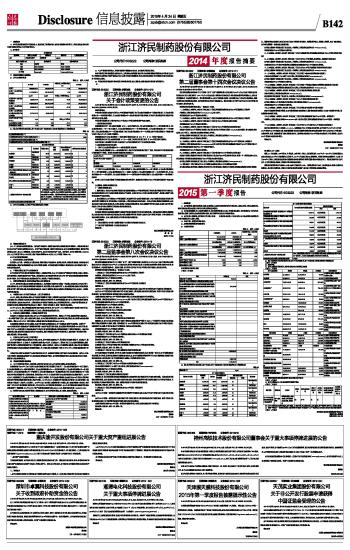 浙江济民制药股份有限公司2014年度报告摘要 2015-04-24 来源:证券时报网 作者:
