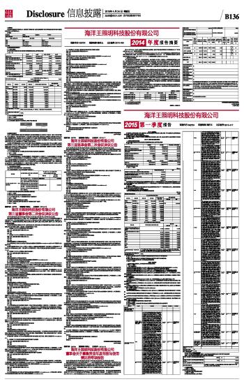 海洋王照明科技股份有限公司2014年度报告摘要 2015-04-24 来源:证券时报网 作者: