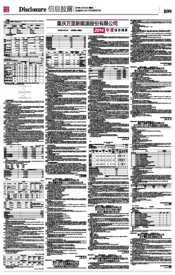 重庆万里新能源股份有限公司2014年度报告摘要 2015-04-24 来源:证券时报网 作者: