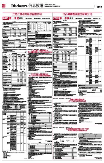 | 江苏江淮动力股份有限公司2015第一季度报告 | 2015-04-24 | |