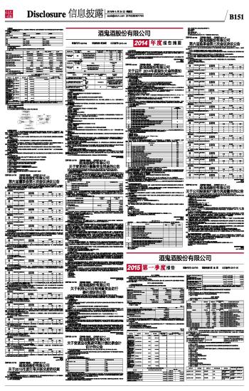 酒鬼酒股份有限公司2015第一季度报告