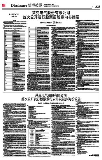 莱克电气股份有限公司首次公开发行股票发行安排及初步询价公告