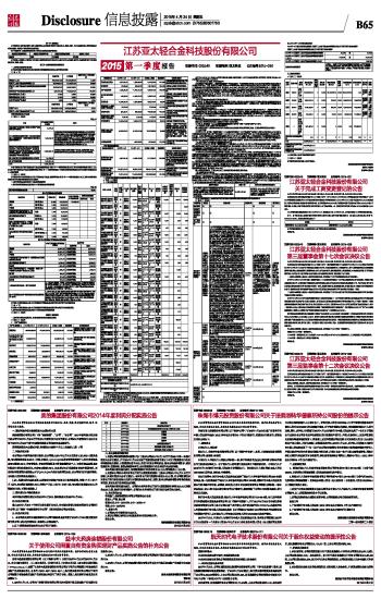 江苏亚太轻合金科技股份有限公司2014年度报告摘要