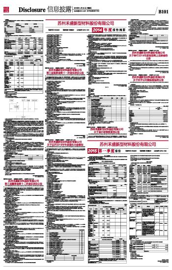 苏州禾盛新型材料股份有限公司2014年度报告摘要