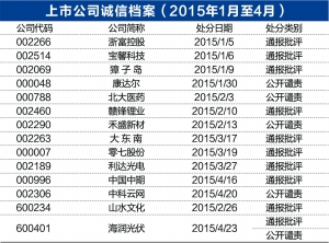 4月两公司当事人被公开谴责 2015-04-25 来源:证券时报网 作者:刘雯亮