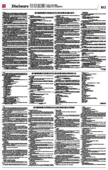 (上接B11版) 如果法律法规或监管部门对上述投资组合比例限制进行变更的,以变更后的规定为准。法律法规或监管部门取消上述限制,如适用于本基金,基金管理人在履行适当程序后,则本基金投资不再受相关限制。 基金管理人应当自基金合同生效之日起6个月内使基金的投资组合比例符合基金合同的有关约定。在上述期间内,本基金的投资范围、投资策略应当符合基金合同的约定。基金托管人对基金的投资的监督与检查自基金合同生效之日起开始。 因证券市场、期货市场波动、上市公司合并、基金规模变动、股权分置改革中支付对价等基金管理人之外的因素致使基金投资比例不符合上述规定投资比例的,基金管理人应当在10个交易日内进行调整,但中国证监会规定的特殊情形除外。法律法规另有规定的,从其规定。 (三)基金托管人根据有关法律法规的规定及基金合同的约定,对本托管协议第十五条第九款基金投资禁止行为进行监督。基金托管人通过事后监督方式对基金管理人基金投资禁止行为进行监督。 (四)基金如投资银行存款,基金托管人应根据法律法规的规定及基金合同的约定,对基金投资银行存款的交易对手范围是否符合有关规定进行监督。 (五)本基金投资中小企业私募债券的应符合中国证监会《关于证券投资基金投资中小企业私募债券有关问题的通知》等有关法律法规的规定。 1.基金管理人应在基金首次投资中小企业私募债券前,向基金托管人提供经基金管理人董事会批准的有关基金投资中小企业私募债券的投资决策流程、风险控制制度、流动性风险处置预案、信用风险处置预案等。 基金管理人应至少于首次执行投资指令之前两个工作日将上述资料书面发至基金托管人,保证基金托管人有足够的时间进行审核。基金托管人应在收到上述资料后两个工作日内,以书面或其他双方认可的方式确认收到上述资料。 2.基金管理人对本基金投资中小企业私募债券的流动性风险负责,确保对相关风险采取积极有效的措施,在合理的时间内有效解决基金运作的流动性问题。如因基金巨额赎回或市场发生剧烈变动等原因而导致基金现金周转困难时,基金管理人应保证提供足额现金确保基金的支付结算。 3.基金托管人有权根据基金管理人制定的风险控制制度对基金管理人投资中小企业私募债券的额度和比例进行监督。如果基金管理人对相应风险控制制度进行修改的,应及时修订后通知基金托管人。 4.基金托管人对基金投资中小企业私募债券是否符合比例限制进行事后监督,如发现异常情况,应及时以书面形式通知基金管理人。基金管理人应积极配合和协助基金托管人的监督和核查。基金管理人接到通知后应及时核对并向基金托管人说明原因和解决措施。基金托管人有权随时对所通知事项进行复查, 督促基金管理人改正。基金管理人违规事项未能在限期内纠正的,基金托管人应报告中国证监会。 如因市场变化,基金管理人投资的中小企业私募债券超过投资比例的,基金托管人有权要求基金管理人在10个交易日内将中小企业私募债券调整至规定的比例要求。 (六)基金托管人根据有关法律法规的规定及基金合同的约定,对基金管理人参与银行间债券市场进行监督。基金管理人应在基金投资运作之前向基金托管人提供符合法律法规及行业标准的、经慎重选择的、本基金适用的银行间债券市场交易对手名单,并约定各交易对手所适用的交易结算方式。基金管理人应严格按照交易对手名单的范围在银行间债券市场选择交易对手。基金托管人监督基金管理人是否按事前提供的银行间债券市场交易对手名单进行交易。基金管理人可以每半年对银行间债券市场交易对手名单及结算方式进行更新名单确定前已与本次剔除的交易对手所进行但尚未结算的交易,仍应按照协议进行结算。如基金管理人根据市场情况需要临时调整银行间债券市场交易对手名单及结算方式的,应及时向基金托管人说明理由,协商解决。 基金管理人负责对交易对手的资信控制,按银行间债券市场的交易规则进行交易,并负责解决因交易对手不履行合同而造成的纠纷及损失。若未履约的交易对手在基金管理人确定的时间内仍未承担违约责任及其他相关法律责任的,基金管理人可以对相应损失先行予以承担,然后再向相关交易对手追偿。基金托管人则根据银行间债券市场成交单对合同履行情况进行监督。如基金托管人事后发现基金管理人没有按照事先约定的交易对手或交易方式进行交易时,基金托管人应及时提醒基金管理人,基金托管人不承担由此造成的任何损失和责任。 (七)基金托管人根据有关法律法规的规定及基金合同的约定,对基金管理人投资流通受限证券进行监督。 基金管理人投资流通受限证券,应事先根据中国证监会相关规定,明确基金投资流通受限证券的比例,制订严格的投资决策流程和风险控制制度,防范流动性风险、法律风险和操作风险等各种风险。基金托管人对基金管理人是否遵守相关制度、流动性风险处置预案以及相关投资额度和比例等的情况进行监督。 1. 本基金投资的流通受限证券须为经中国证监会批准的非公开发行股票、公开发行股票网下配售部分(如适用)等在发行时明确一定期限锁定期的可交易证券,不包括由于发布重大消息或其他原因而临时