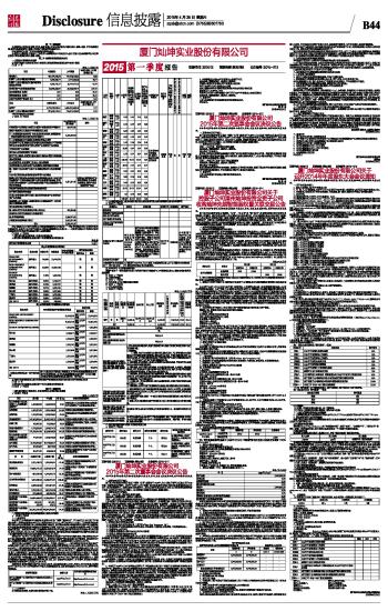 厦门灿坤实业股份有限公司2015第一季度报告 2015-04-25 来源:证券时报网 作者:
