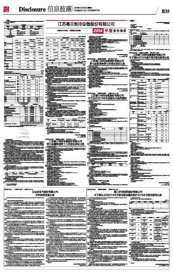 | 江苏春兰制冷设备股份有限公司2014年度报告摘要 | 2015-04-25 |