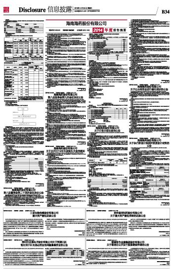海南海药股份有限公司2014年度报告摘要 2015-04-25 来源:证券时报网 作者:
