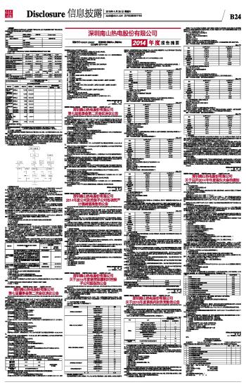 深圳南山热电股份有限公司2014年度报告摘要 2015-04-25 来源:证券时报网 作者: