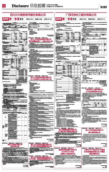 广西河池化工股份有限公司2015第一季度报告 2015-04-25 来源:证券时报网 作者:
