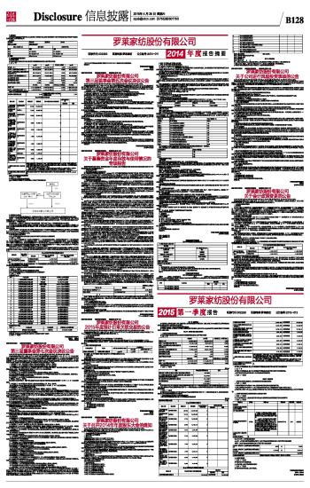 罗莱家纺股份有限公司2015第一季度报告 2015-04-25 来源:证券时报网 作者: