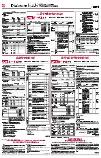 | 深圳市盐田港股份有限公司2015第一季度报告 | 2015-04-25 | |
