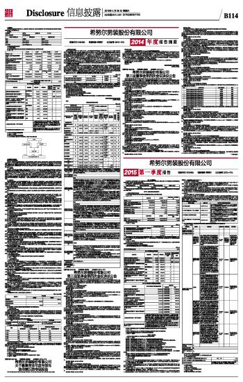 希努尔男装股份有限公司2015第一季度报告 2015-04-25 来源:证券时报网 作者: