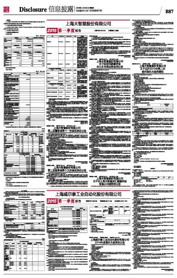 上海威尔泰工业自动化股份有限公司2015第一季度报告 2015-04-25 来源:证券时报网 作者: