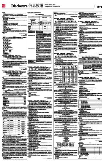 (上接B77版) (3)数字证书 需要领取数字证书的投资者可参见深交所网站( http://ca.szse.cn )或深交所互联网投票系统“证书服务”栏目。 2、股东根据获取的服务密码或数字证书登录网址 wltp.cninfo.com.cn 进行互联网投票系统投票。 (1)登录 wltp.cninfo.com.cn,在“上市公司股东大会列表”选择“中钢集团安徽天源科技股份有限公司2014年度股东大会投票” ; (2)进入后点击“投票登录” ,选择“用户名密码登陆” ,输入您的“证券账户号”和“服务密码” ;已申领数字证书的投资者可选择 CA 证书登录; (3)进入后点击“投票表决” ,根据网页提示进行相应操作; (4)确认并发送投票结果。 3、投资者通过深圳证券交易所互联网投票系统进行网络投票的起止时间为2015年5月14日下午15:00 至2015年5月15日下午15:00的任意时间。 (三)投票注意事项 1、网络投票不能撤单; 2、对同一表决事项的投票只能申报一次,多次申报的以第一次申报为准; 3、同一表决权既通过交易系统又通过互联网投票的,以第一次投票为准。 4、如需查询投票结果,请于投票当日下午18:00以后登录深圳证券交易 所互联网投票系统(http://wltp.cninfo.com.cn ),点击“投票查询”功能,可以查看个人网络投票结果,或通过投票委托的证券公司营业部查询。 六、其他事项 1、会议联系人:章超 罗恒 联系电话:0555-5200209, 传真:0555-5200222 通讯地址:安徽省马鞍山市经济技术开发区红旗南路51号,邮编:243000 2、参加会议人员的食宿及交通费用自理。 3、出席现场会议人员请于会议召开前半小时内到达会议地点,并携带身份证明、股票账户卡、授权委托书等原件,以便签到入场。 4、网络投票系统异常情况的处理方式:网络投票期间,如网络投票系统遇突发重大事件的影响,则本次股东大会的进程按当日通知进行。 特此公告。 中钢集团安徽天源科技股份有限公司 董 事 会 二〇一五年四月二十五日 附:授权委托书 授权委托书 兹全权委托 先生(女士)代表本人(单位)出席中钢集团安徽天源科技股份有限公司二〇一四年度股东大会,并于本次股东大会按照下列指示就下列议案投票,如没有做出指示,代理人有权按自己的意愿表决。 1、审议《2014年度董事会工作报告》; 同意□ 反对□ 弃权□ 2、审议《2014年度监事会工作报告》; 同意□ 反对□ 弃权□ 3、审议《2014年度财务决算报告》; 同意□ 反对□ 弃权□ 4、审议《2014年度报告及年度报告摘要》; 同意□ 反对□ 弃权□ 5、审议《2014年度利润分配预案》; 同意□ 反对□ 弃权□ 6、审议《关于银行贷款额度的议案》; 同意□ 反对□ 弃权□ 7、审议《关于续聘2015年度审计机构的议案》; 同意□ 反对□ 弃权□ 8、审议《关于为全资子公司提供担保的议案》。 同意□ 反对□ 弃权□ 委托人签名(盖章): 身份证号码: 持股数量: 股东帐号: 受托人签名: 身份证号码: 受托日期:2015年 月 日 注:1、股东请在选项中打 √ ; 2、每项均为单选,多选无效; 3、授权委托书用剪报或复印件均有效。 证券代码:002057 证券简称:中钢天源 公告编号:2015-017 中钢集团安徽天源科技股份有限公司 2014年度利润分配预案 本公司及董事会全体成员保证公告内容真实、准确和完整,并对公告中的虚假记载、误导性陈述或者重大遗漏承担责任。 公司2014年初未分配利润余额为41,496,497.98元。经中天运会计师事务所有限公司审计,2014年度归属于母公司所有者的净利润为19,509,377.91元。母公司实现净利润18,082,043.05元,按照10%计提本年法定盈余公积1,808,204.31元,公司2014年度累计未分配利润为56,705,400.72元。 公司2014年度拟以截止2014年12月31日总股本199,381,670股为基数,向全体股东每10股派发现金股利0.10元(含税),共计1,993,816.70元。公司剩余未分配利润54,711,584.02元结转至以后年度分配。 上述利润分配预案符合公司当前实际情况,符合《公司章程》及其他相关规定。 公司独立董事已对该预案发表独立意见,详见公司于2015年4月25日刊登在巨潮资讯网(http://www.cninfo.com.cn)上的《独立董事对相关事项发表的独立意见》。 本预案尚须提交公司2014年度股东大会审议。 中钢集团安徽天源科技股份有限公司 董 事 会 二〇一五年四月二十五日
