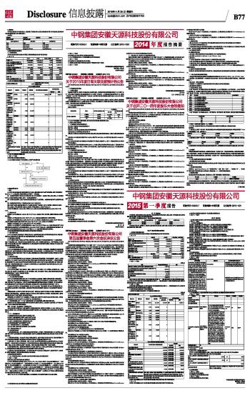 中钢集团安徽天源科技股份有限公司2015第一季度报告 2015-04-25 来源:证券时报网 作者: