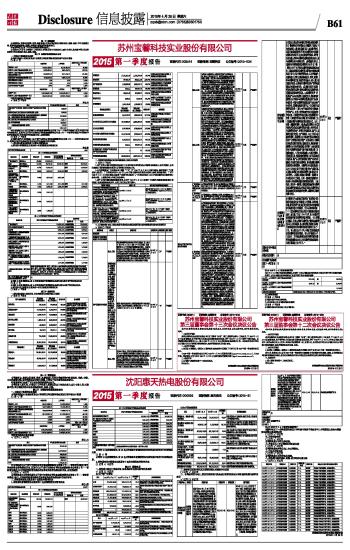 | 沈阳惠天热电股份有限公司2015第一季度报告 | 2015-04-25 |