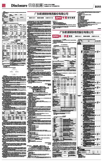 广东欧浦钢铁物流股份有限公司2015第一季度报告