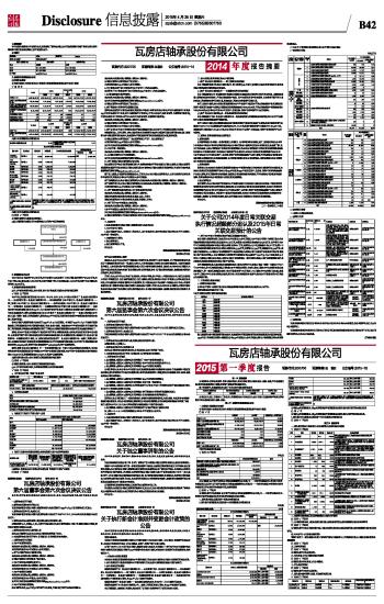 瓦房店轴承股份有限公司2014年度报告摘要