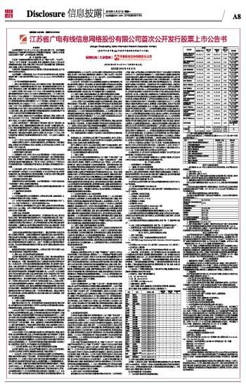江苏省广电有线信息网络股份有限公司首次公开发行股票上市公告书 2015-04-27 来源:证券时报网 作者: