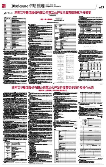 湖南艾华集团股份有限公司首次公开发行股票初步询价及推介公告