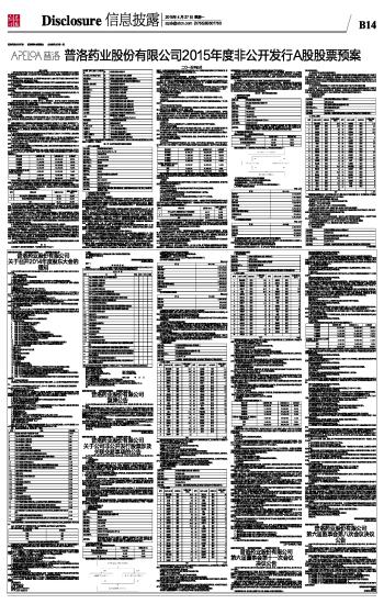 普洛药业股份有限公司2015年度非公开发行A股股票预案