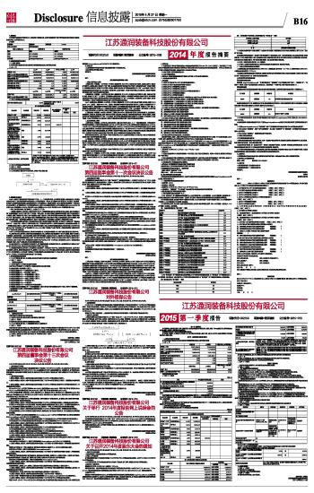 江苏通润装备科技股份有限公司2015第一季度报告