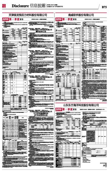 天津银龙预应力材料股份有限公司2015第一季度报告